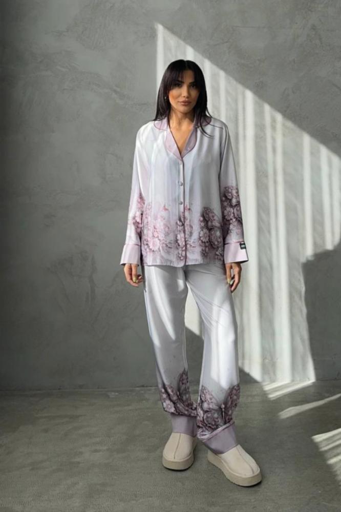 بجامة ستان أنيقة باللون الأرجواني الفاتح
