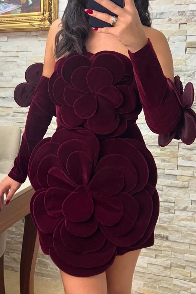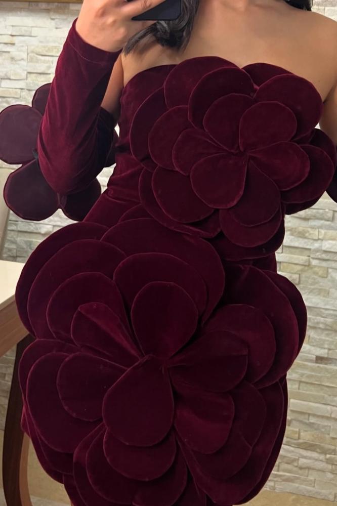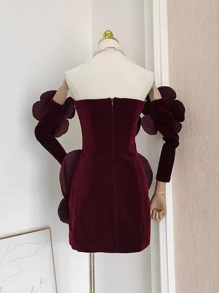 فستان مخمل قصير باكمام منفصله A28