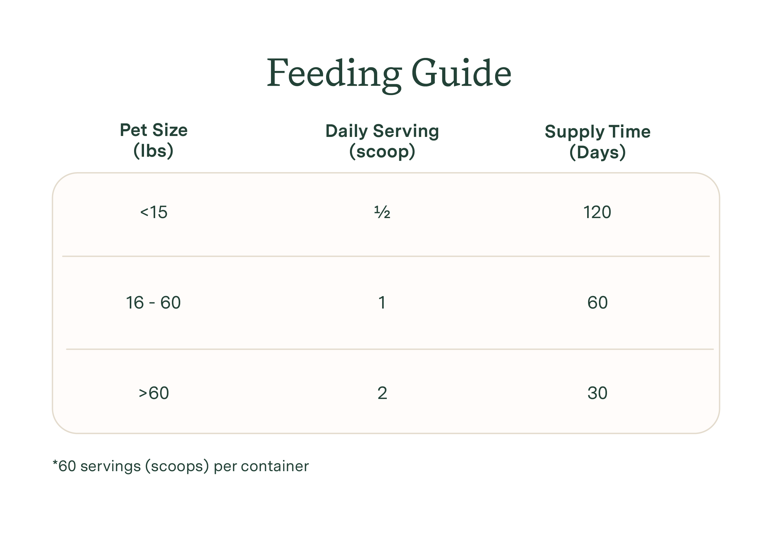 قم بإطعامه عن طريق الفم عن طريق إضافة الكمية الموصى بها إلى طعام حيوانك الأليف باستخدام الملعقة المرفقة. يمتزج هذا المسحوق الخالي من النكهة بسهولة مع وجبته - ولن يعرف حتى أنه موجود.