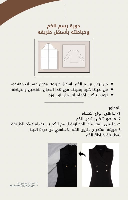 - دورة مخصصة لكل من ترغب بتركيب أكمام لفستان او بلوزة