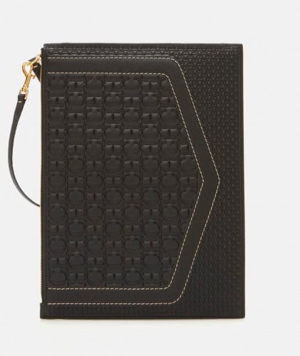 INITIALS INSIGNIA CUTOUT LEATHER SLIDES