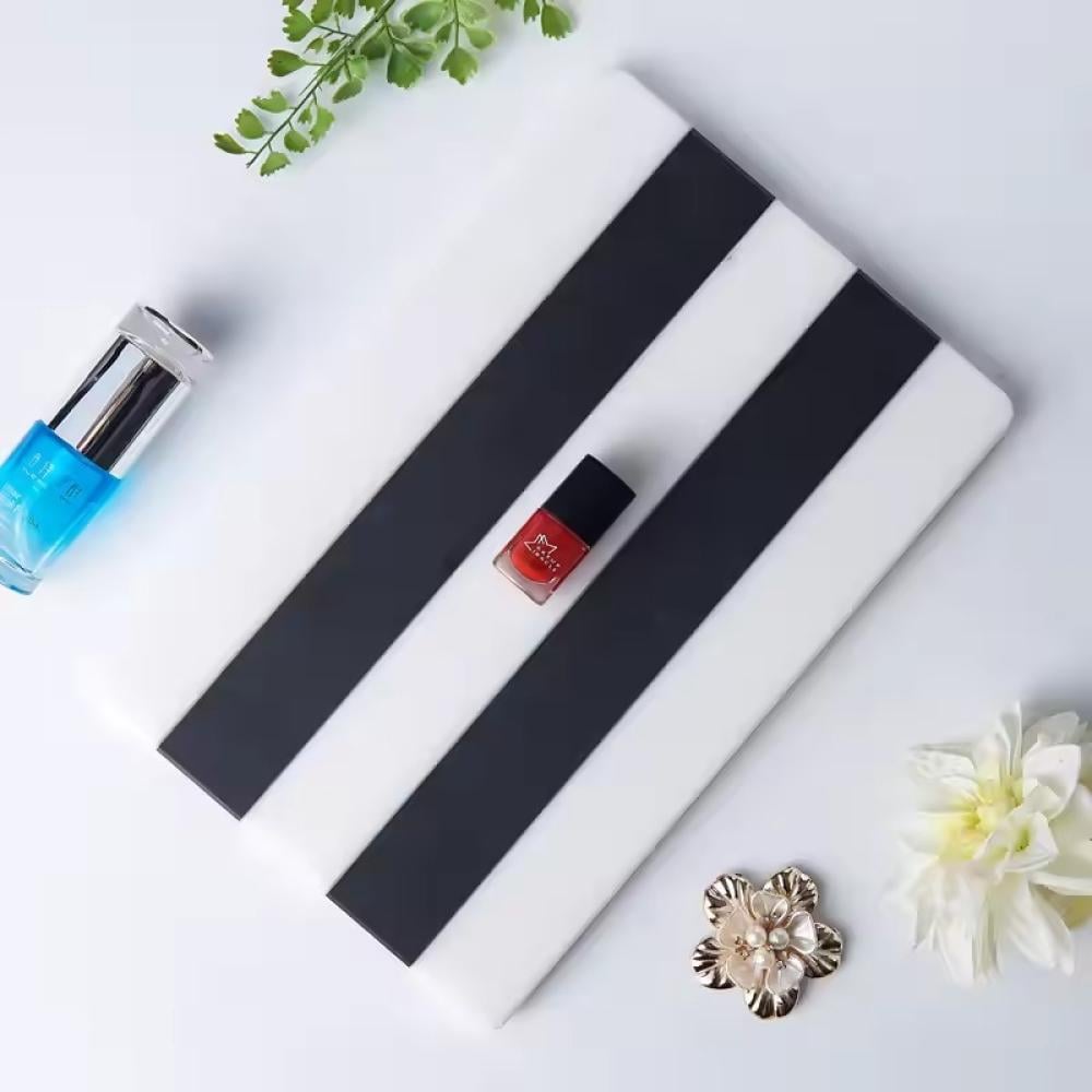 اجعلي من الترتيب جزءًا من ديكورك مع هذه الصينية الفاخرة المستطيلة، المصممة بنقشة خطوط طولية باللونين الأبيض والأسود. تأتي بمقاس 30×20 سم، وهي مناسبة لاستخدامات متعددة مثل تنسيق العطور أو الشموع أو حتى تقديم الضيافة بشكل عصري وملفت.