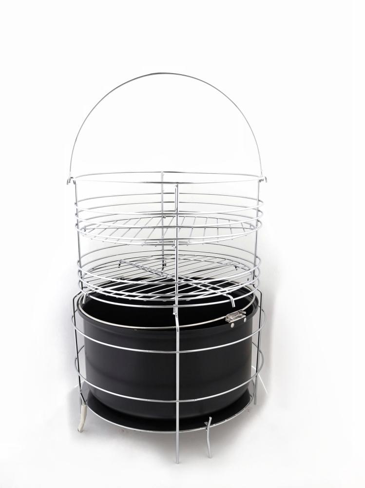 السلة دورين تتسع من اللحم لتيس او خروف صغير مفصل يزن 10 كيلو .. او 10 حبات دجاج حجم 1000 جرام او ما يعادلها من السمك او انواع الطيور الاخرى مثل الحمام او البط .. قدر الارز يتسع لحوالي 4 كيلو الى 4 ونصف كيلو من ارز المزه السيلا ما يعادل 20 كاس ارز مقاس كاس الشاي الورق