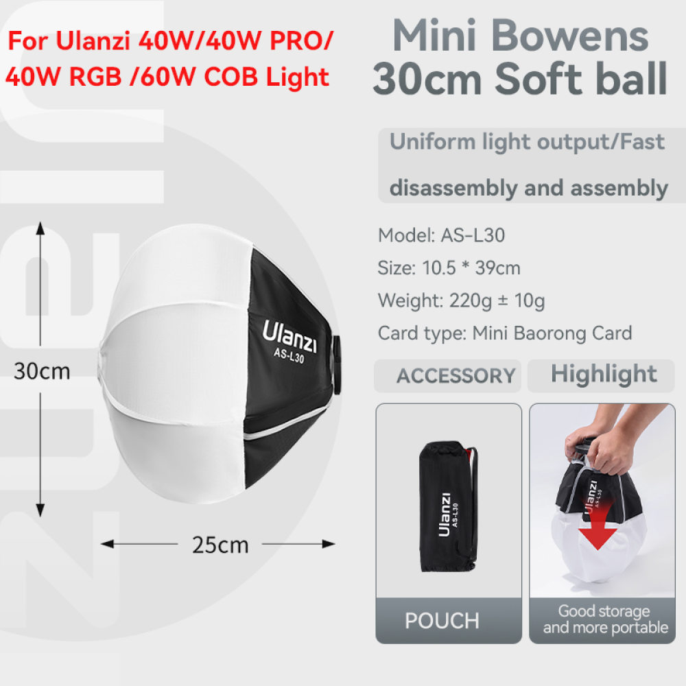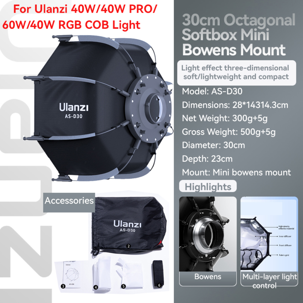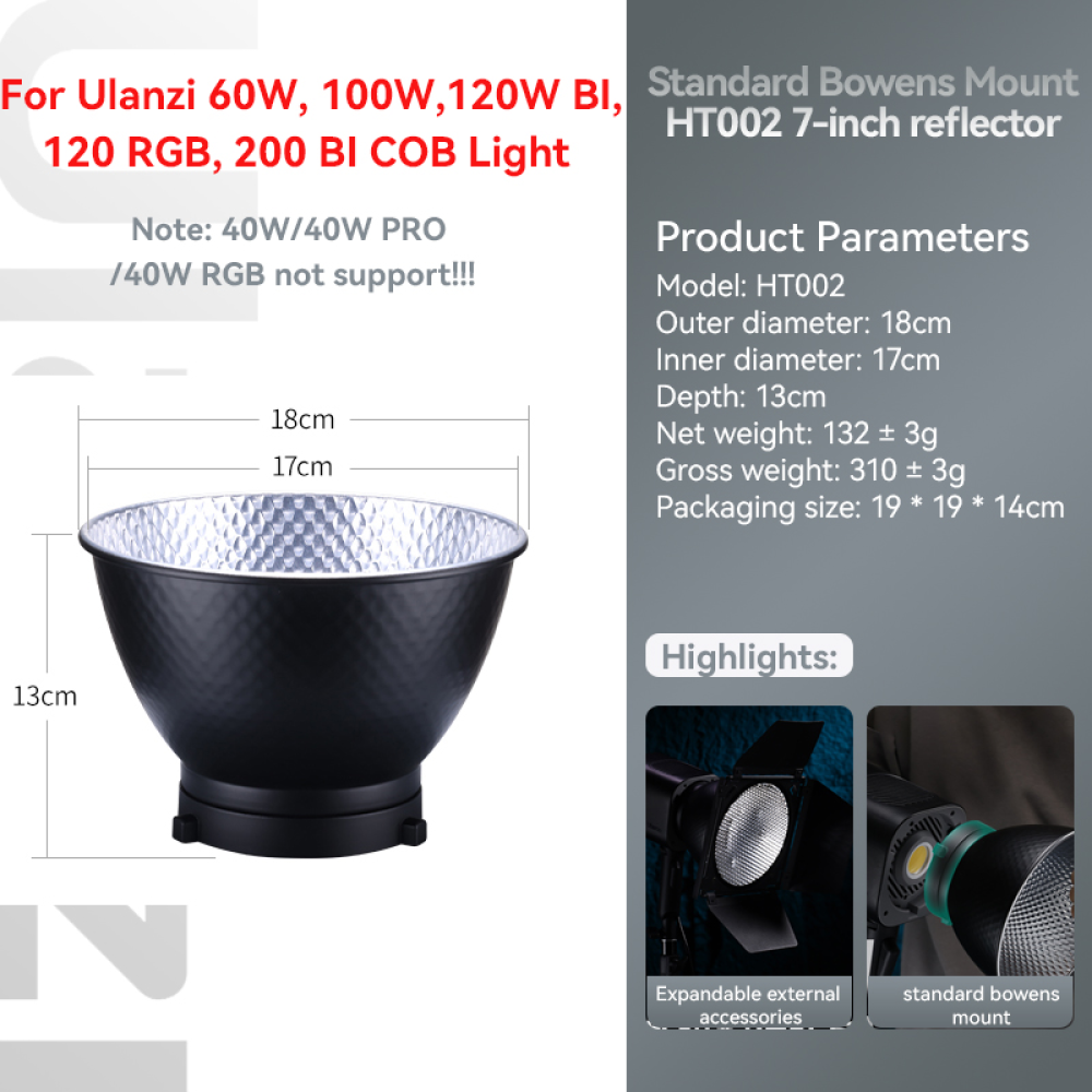 - مناسبة لمصابيح Ulanzi 40W / 40W PRO / 40W RGB / 60W COB / 120W و 200W