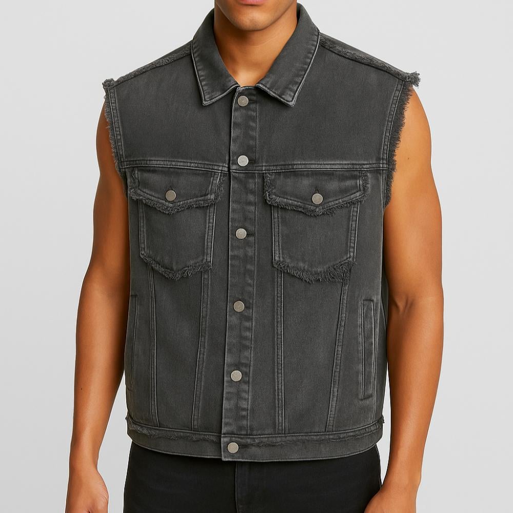 - القماش: دينم (Denim) باللون الأسود الغامق مع تأثير باهت (Washed Effect).