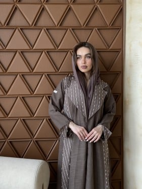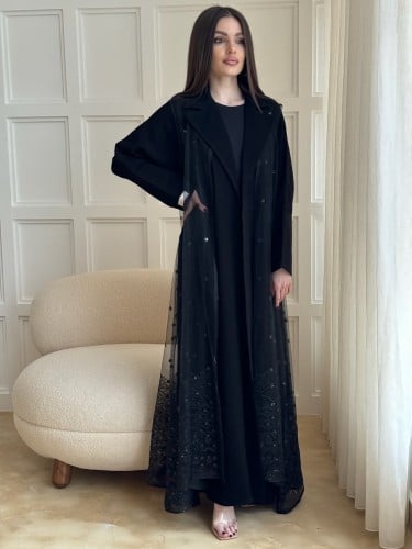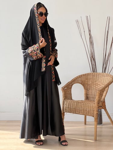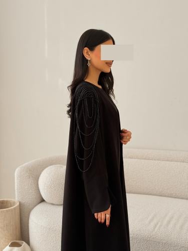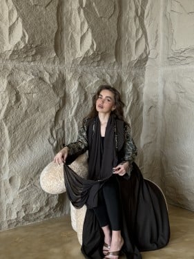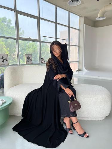 -الوصف:عباية بـقماش كريب جاكار بلمعـة من نفس القماش قصة العباية نص كلوش