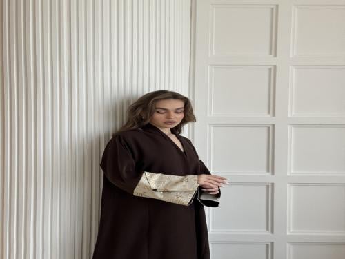 التفاصيل:عبايه عمليـة باردة بلون البني راقي بقماش كريب لمياء اندنوسي