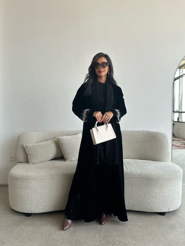التفاصيل:عباية صيفيه بقماش لينن الهندي بقصه نص كلوش مع اضافه بطانة بقماش طرحة للعبايه بقماش فينتام الياباني