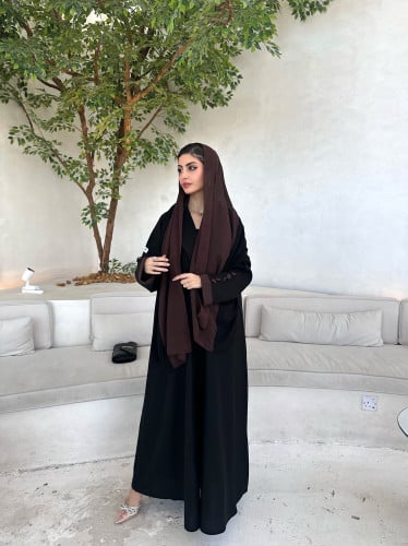 التفاصيل:عباية أنيقة مصممة من قماش الكريب الفاخر مع تفاصيل القيطان الرقيقة. تأتي القصة نص كلوش