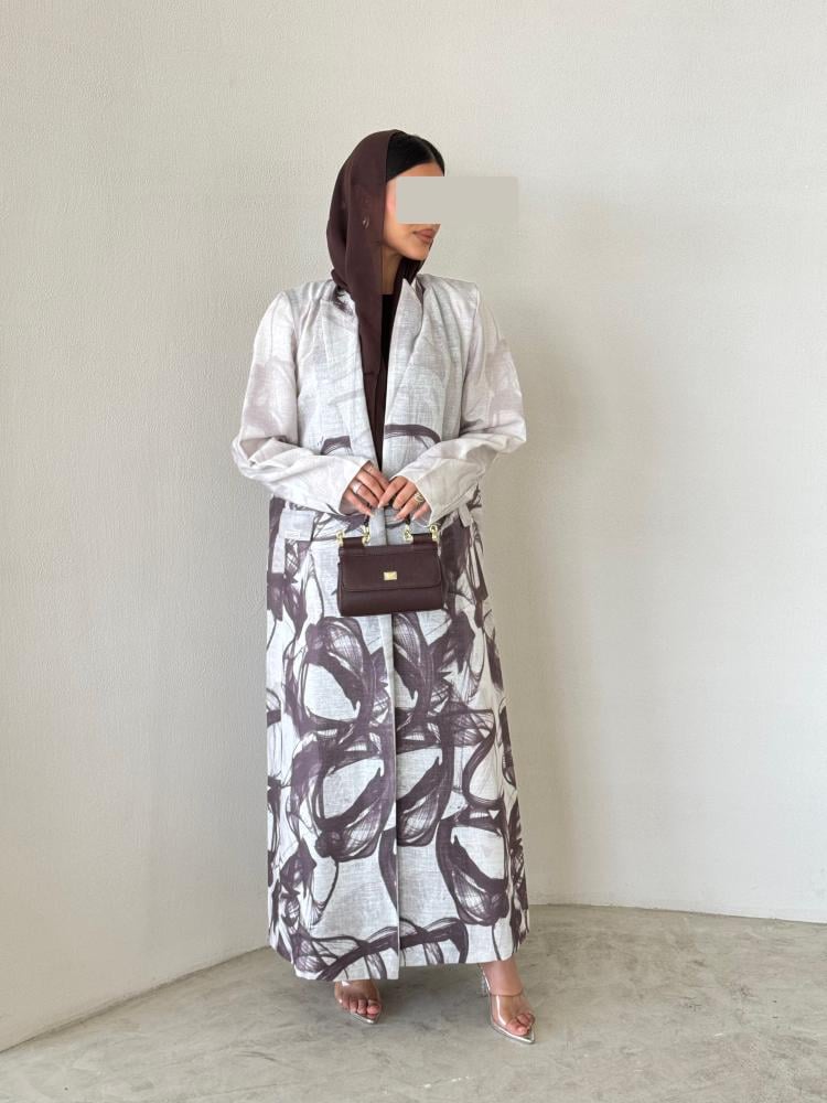 التفاصيل:عباية بليزر بيج بخطوط بني أنيقة، مصنوعة من لنن فاخر هندي عملي ومريح، ومبطنة بقماش ناعم. يميّزها تصميم كلاسيكي هادئ مع كتافات تضيف لمسة من الرُقي والثبات في الإطلالة