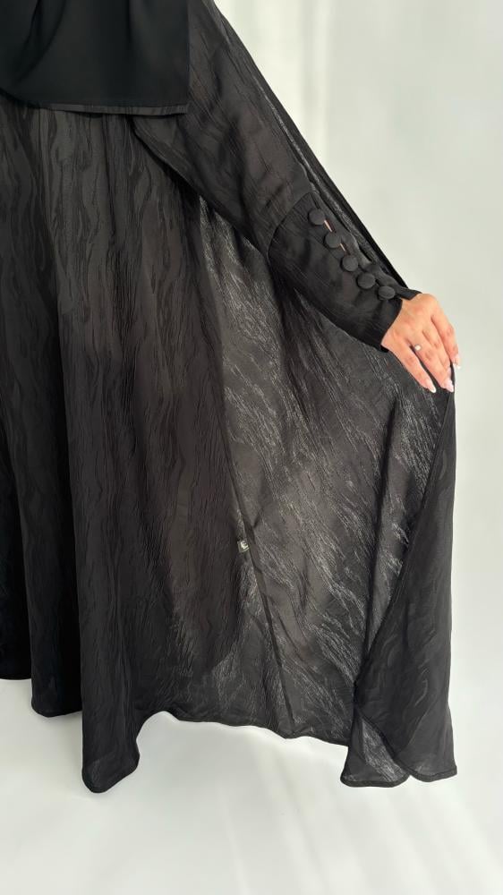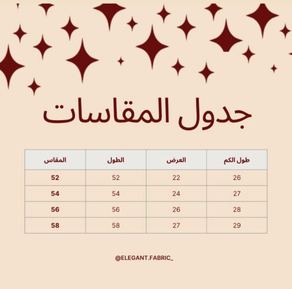 القماش: جاكارالقصة: نص كلوشاللون: اسودمع طرحة مزينه بأطراف من الجاكارنأمل التأكد من القياسات قبل تأكيد الطلب.