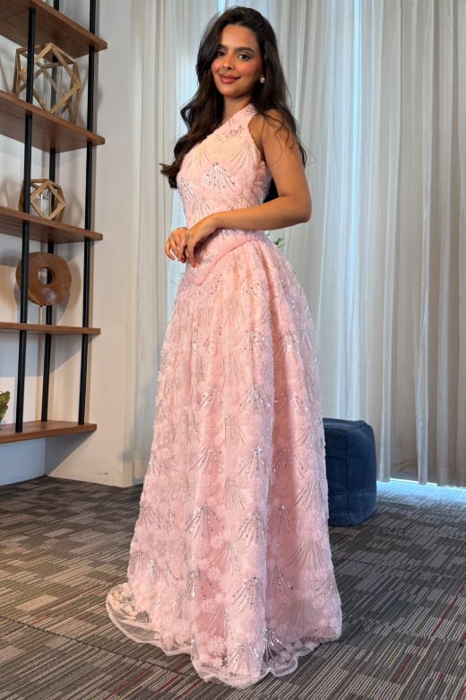 لإطلالة تجسد الأنوثة الكلاسيكية والرقي الحالم، نقدم لكِ هذا الفستان الساحر المصمم ليكون قطعة لا تُنسى في مناسباتك السعيدة.