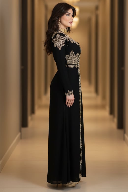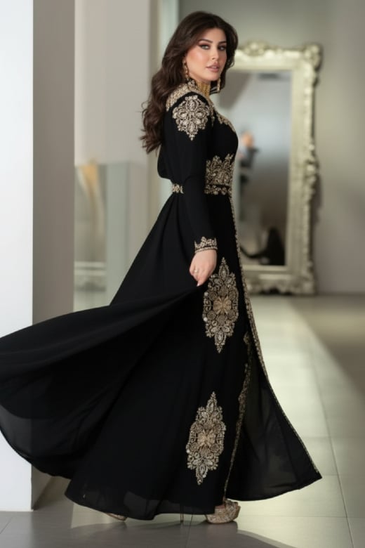 قفطان سهرة أسود بتطريز أصلي - موديل ليالي مراكش
