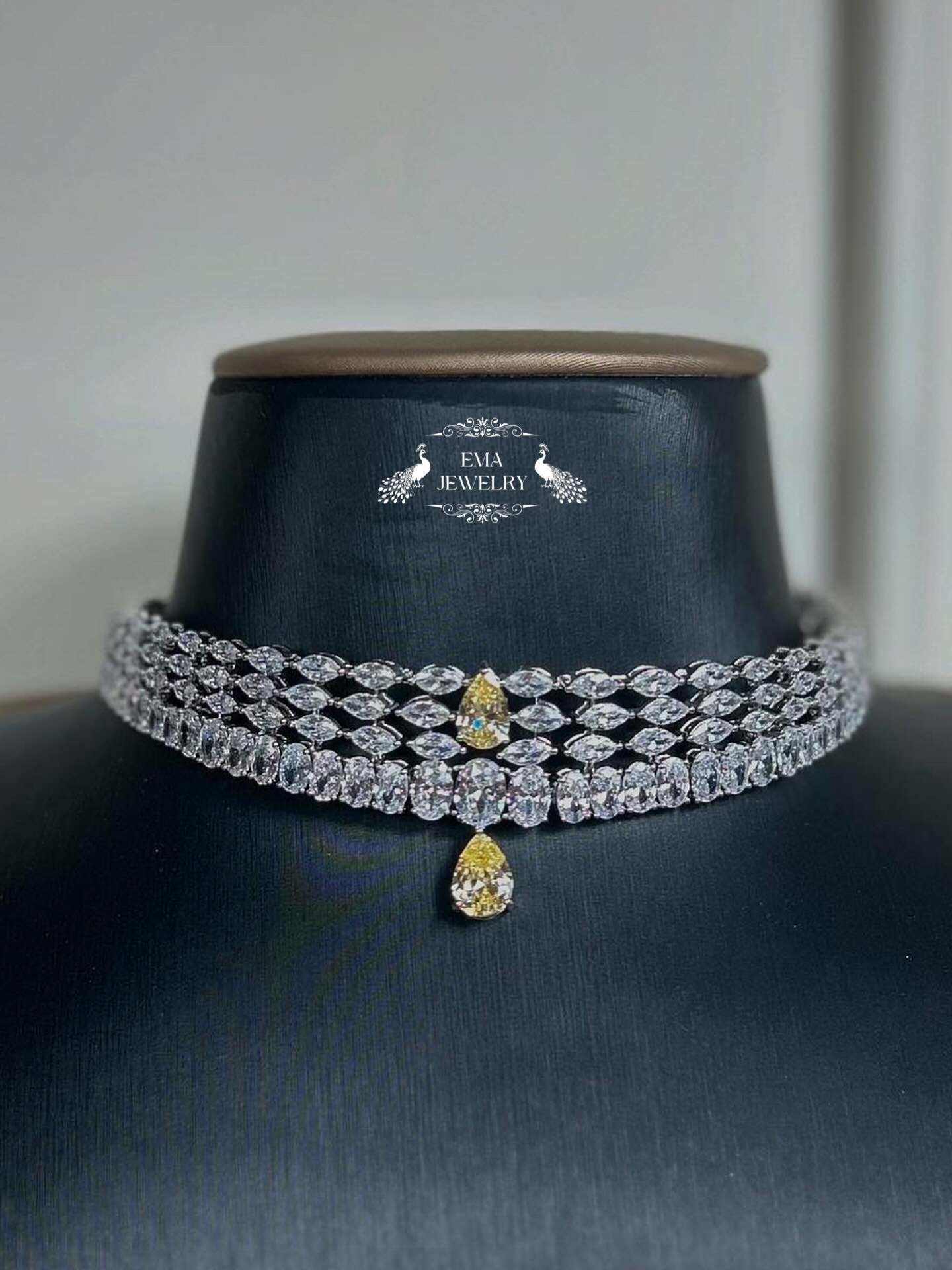 طقم شوكر زركون مطلي بالروديوم