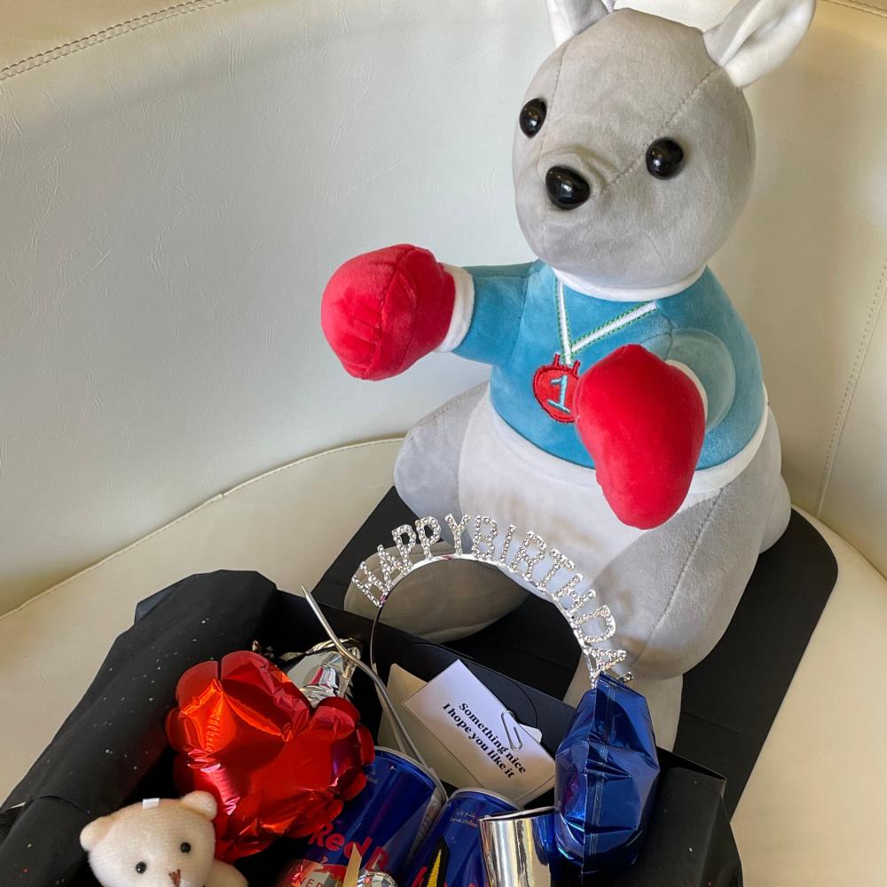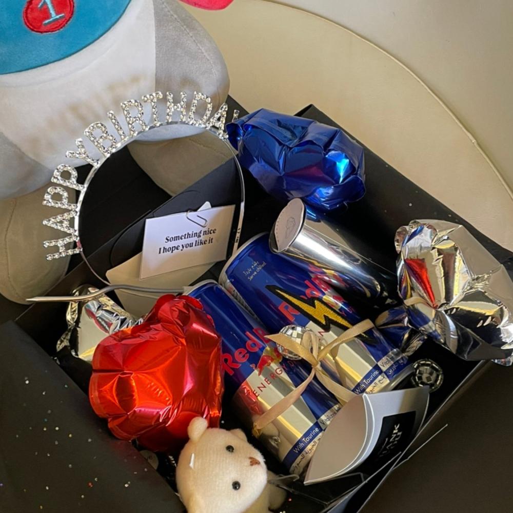 بوكس اهداء الريدبوليحتوي البوكس علىدميه كبيره باللون الازرقدميه صغيرهعبوّتين ريدبول3 بالونات شمعه عباره من اختيارك هديه من المتجرملاحظه : طوق الميلاد اختياري