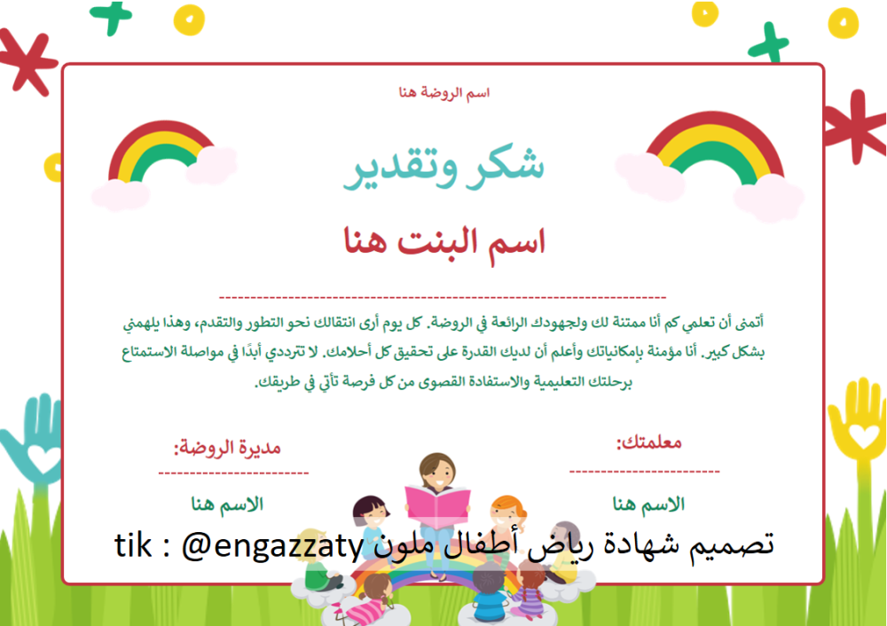 شهادة رياض اطفال تصميم ملون