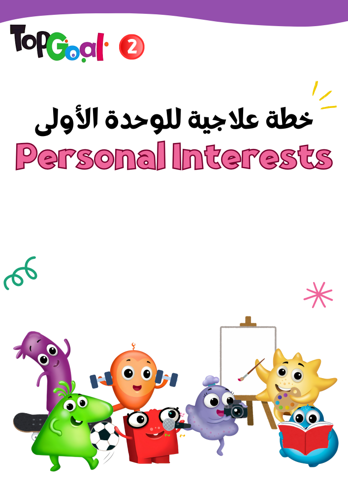 خطة علاجية لمنهج Top Goal2 لمهارات الوحدة الأولى Personal Interests الجزء الأول