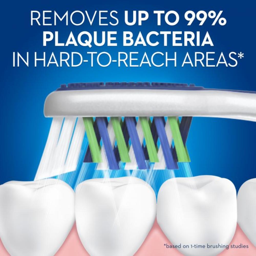 تم تصميم فرشاة أسنان أورال-بي برو إكسبرت كروس أكشن إكسترا كلين لتقليل ما يصل إلى 90% من الترسبات في المناطق التي يصعب الوصول إليها بناءً على دراسات تنظيف الأسنان من مرة واحدة لمنحك ابتسامة نظيفة وصحية.