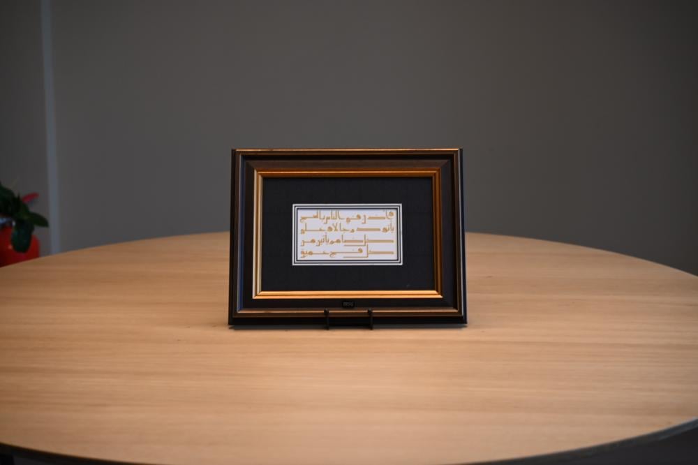 تجسد هذه اللوحة الفاخرة أحد أروع أشكال الفن الإسلامي، حيث تحمل آية قرآنية كريمة عن شعيرة الحج، مخطوطة بأسلوب الخط المكي الأصيل. تصميمها الفريد يعكس جماليات الخط العربي وروحانية الحج، مما يجعلها تحفة فنية استثنائية.