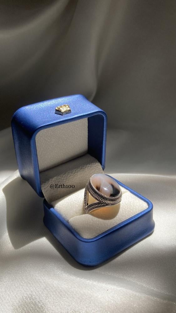 خاتم رجالي فضة عيار 925 مُتوج بالعقيق اليماني الطبيعي الأصلي.