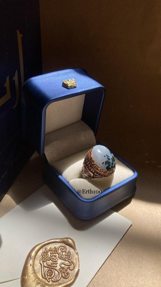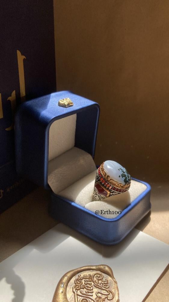 خاتم رجالي فضة عيار 925 مُتوج بالعقيق اليماني الطبيعي الأصلي.