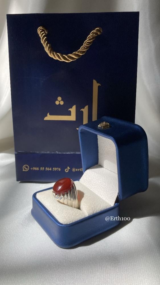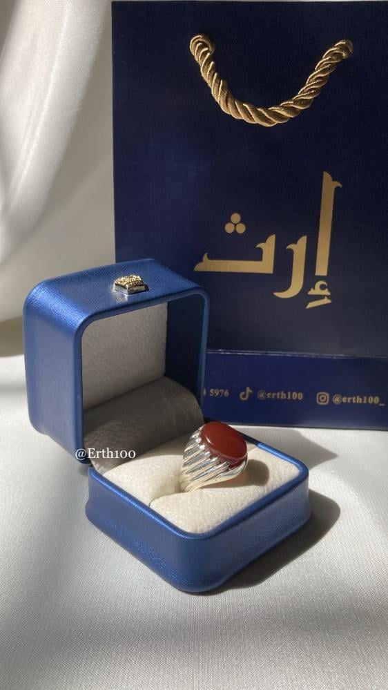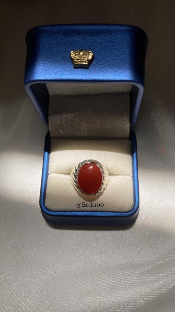 خاتم رجالي فضة عيار 925 مُتوج بالعقيق اليماني الأحمر الطبيعي الأصلي.