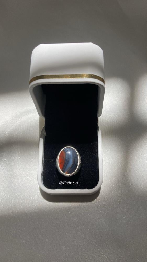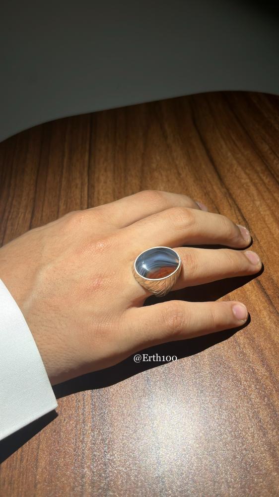 خاتم رجالي فضة عيار 925 مُتوج بالعقيق اليماني الطبيعي الأصلي.