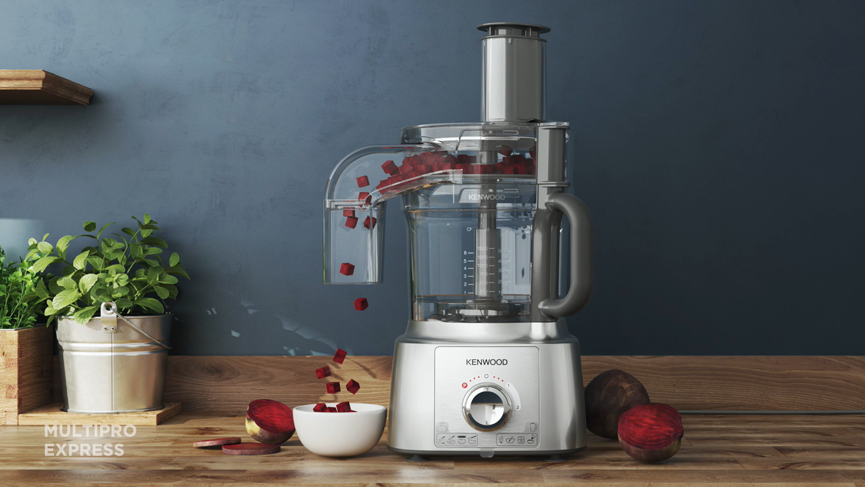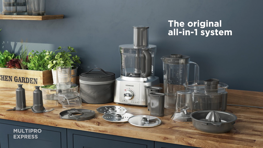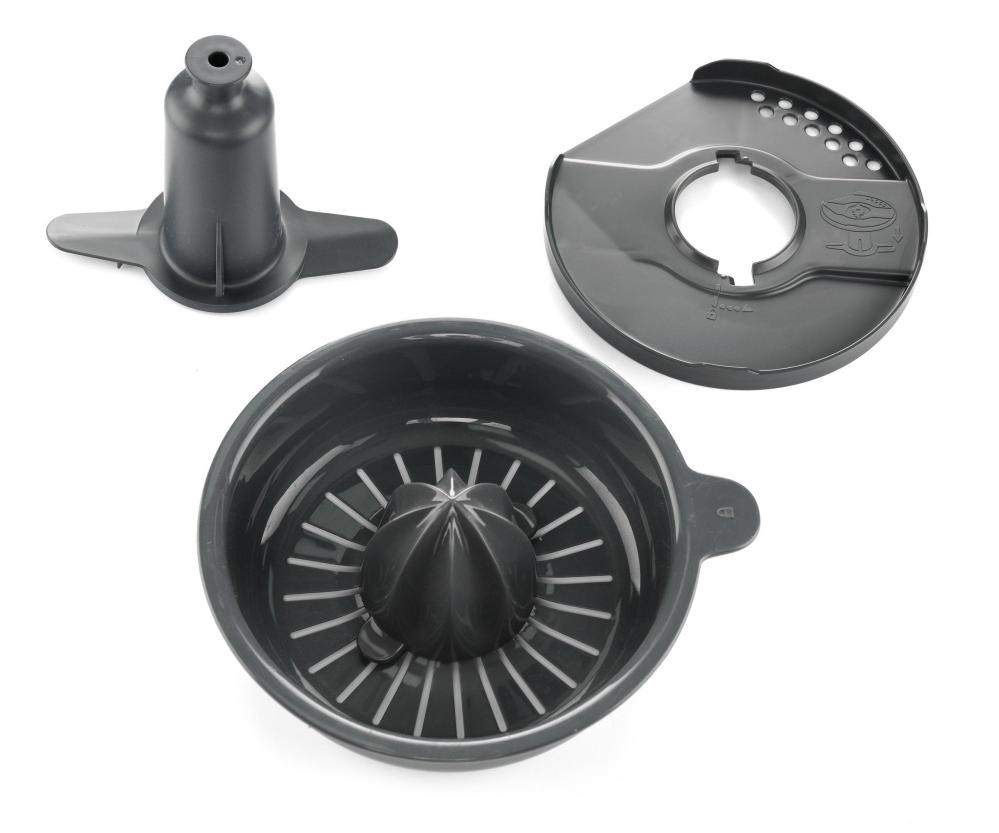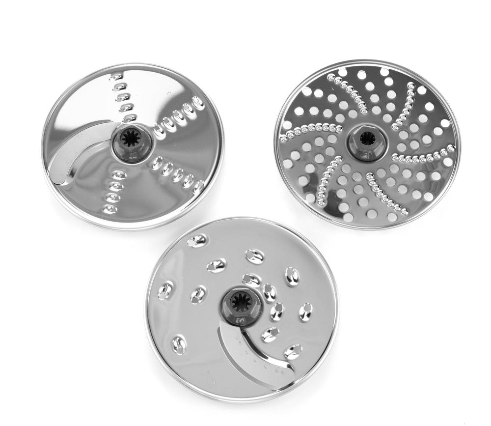 يأتي التصميم الأنيق في وعاء كبير سعة 3 لتر، مع عدة أقراص للتقطيع والبشر.