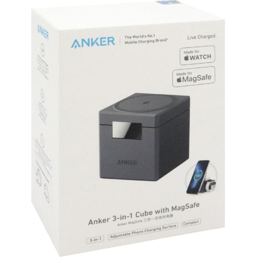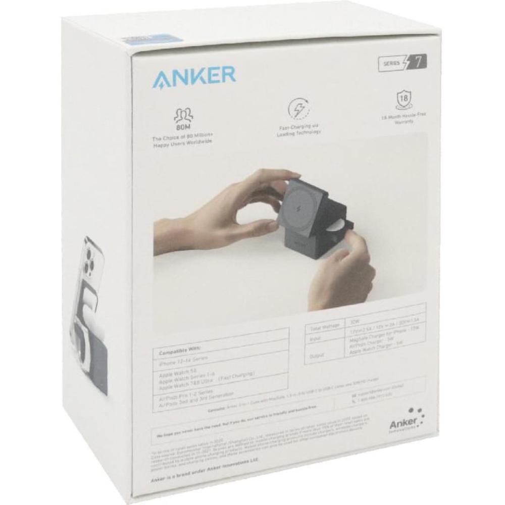 أنكر - موصل شحن لاسلكي 3 في 1 - شاحن لاسلكي مع ماغ سيف - أسود
