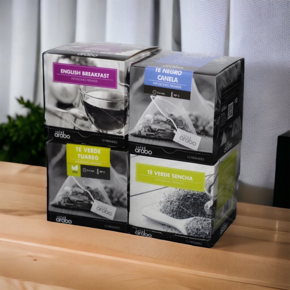 شاي الافطار الانجليزي + شاي اسود بالقرفة + شاي اخضر + شاي اخضر بالنعناع