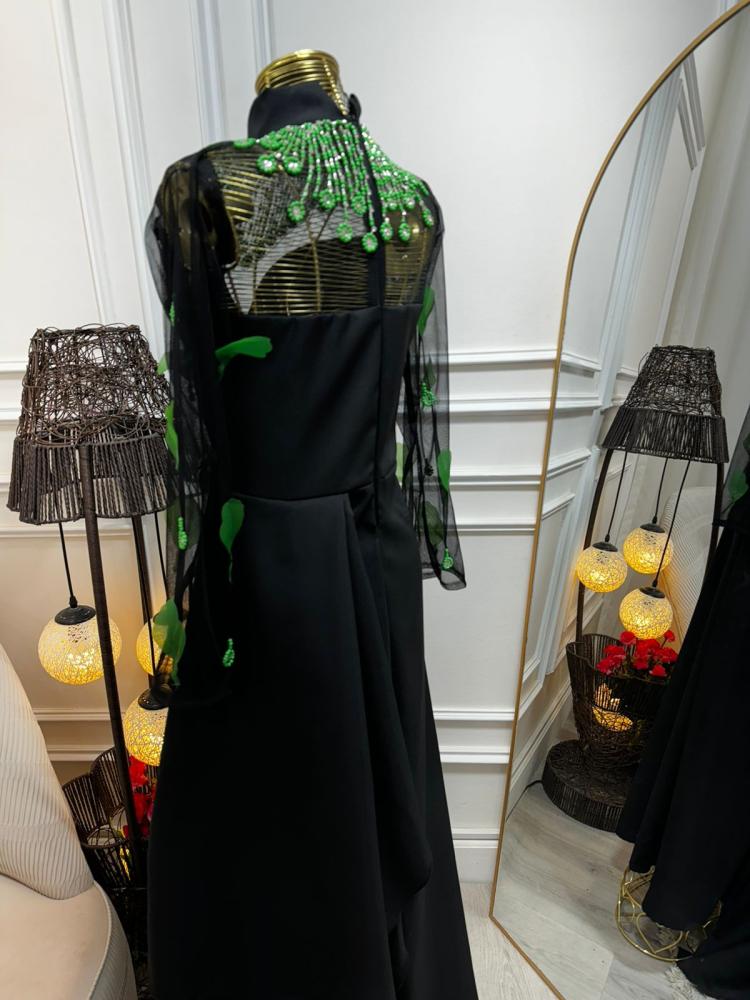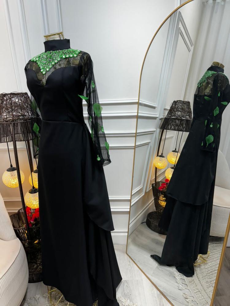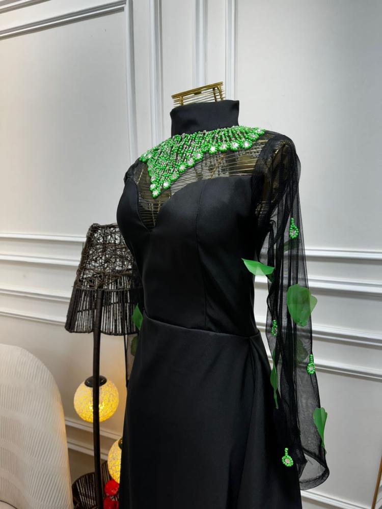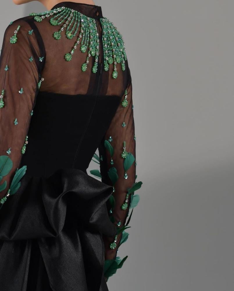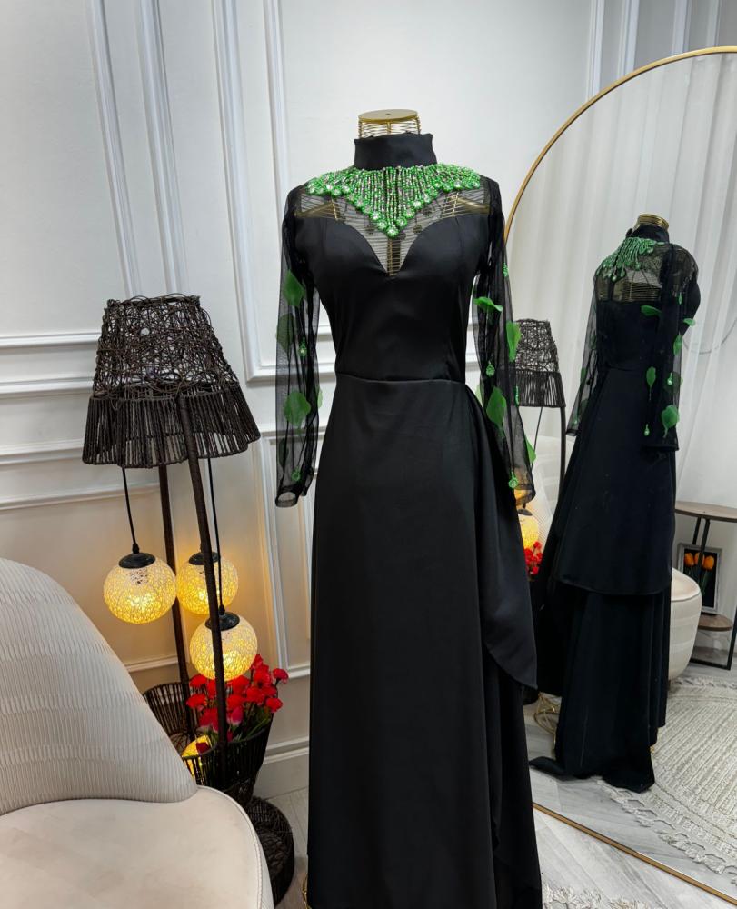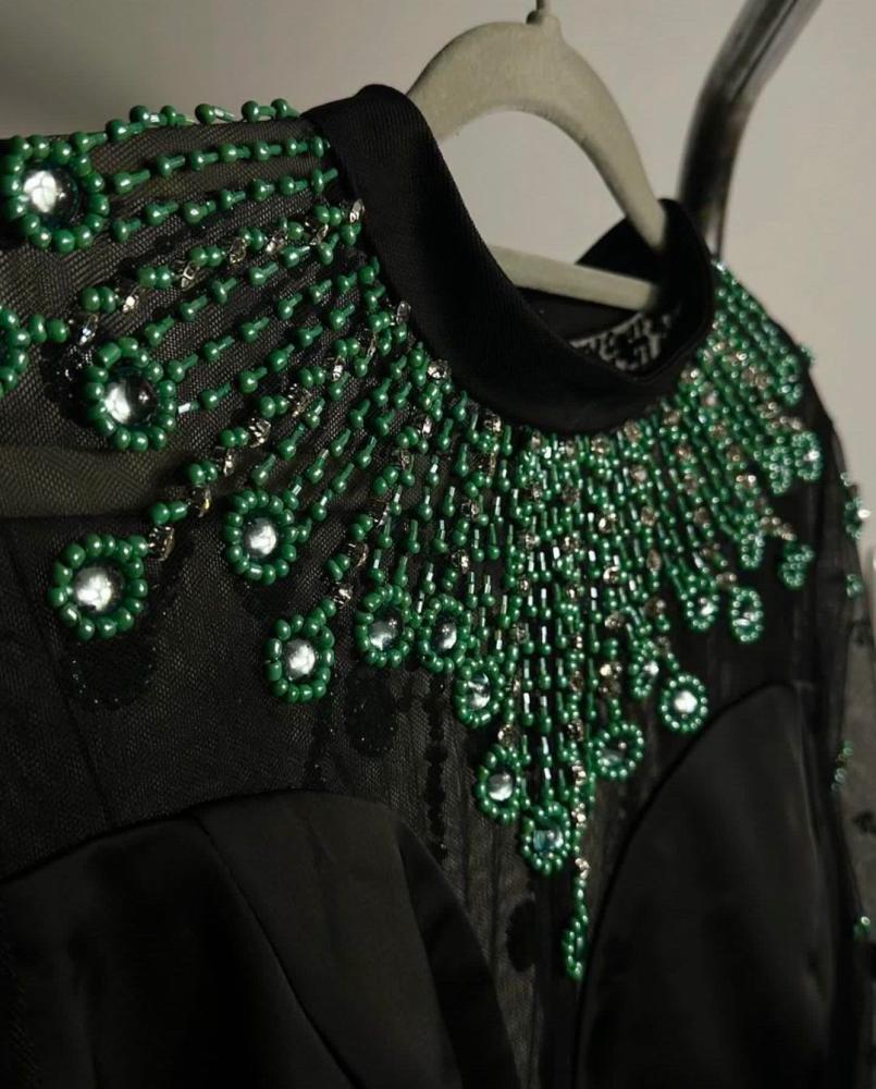 فستان خامه تفته استرتش +قصات ليزر اورجنزا تطريز يدوي كرستال وخرز