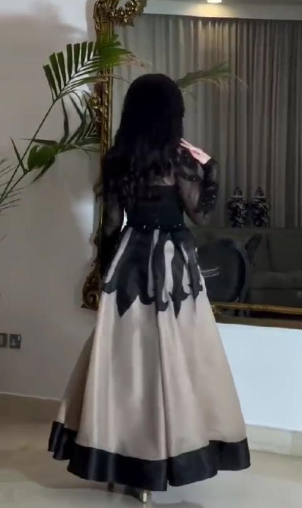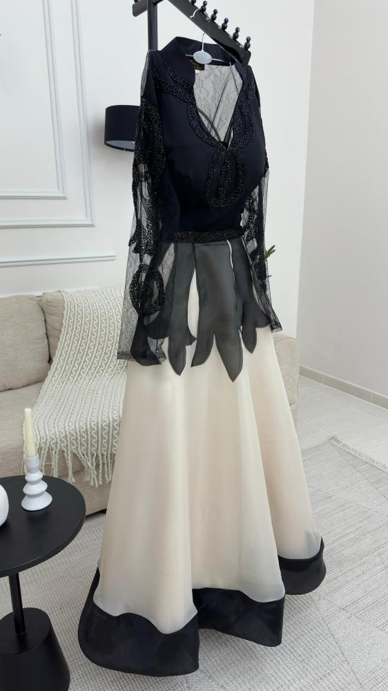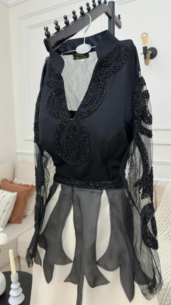 فستان الخامه جزار تطريز راقي مع ليزر