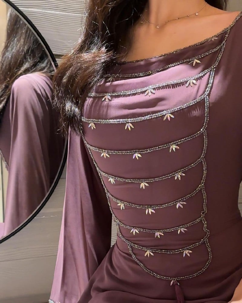 الخامه :شيفون ناعم مبطن + تطريز لممعه اصلي صدر كامل تطريز رااقي + كم تطريز