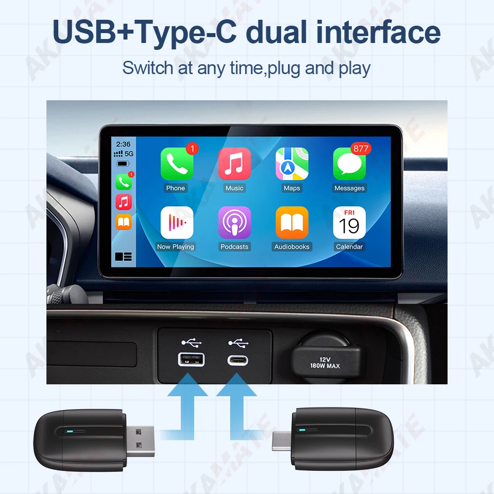 1. محول مشغل سيارة سلكي لاسلكي ، قل وداعًا 2 في 1 من النوع C/USB ، تثبيت التوصيل والتشغيل ، مستقر وسريع ، لا حاجة لإزالة راديو OEM