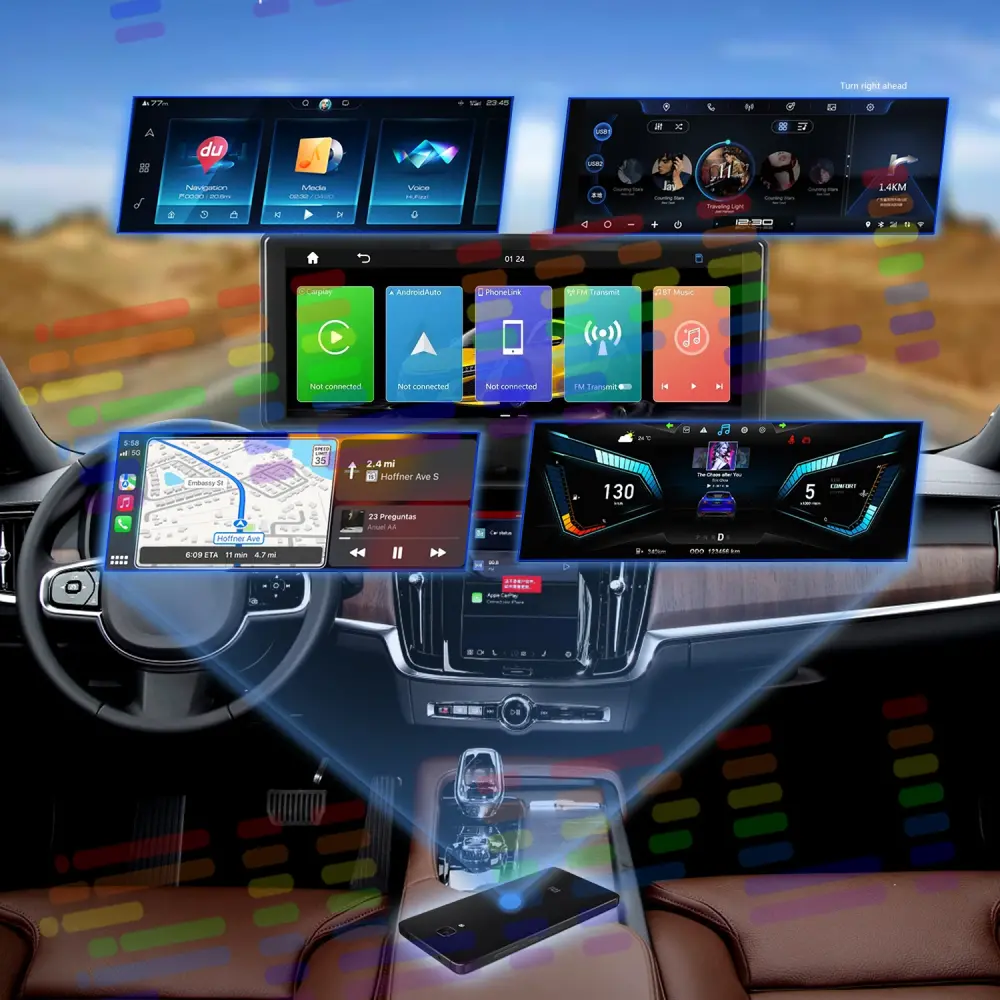 أفضل مشغل سيارة تفاح لاسلكي/أندرويد تلقائي. يدعم هذا ستيريو السيارة المحمول مشغل سيارة لاسلكي/أندرويد تلقائي. ما عليك سوى الاتصال بهاتفك الذكي عبر البلوتوث حتى تتمكن من الوصول إلى الخريطة والملاحة وجهات الاتصال الهاتفية والموسيقى والمزيد أثناء التركيز على الطريق. عندما يتم تشغيل الجهاز ، سيحاول الاتصال تلقائيًا بآخر هاتف متصل.