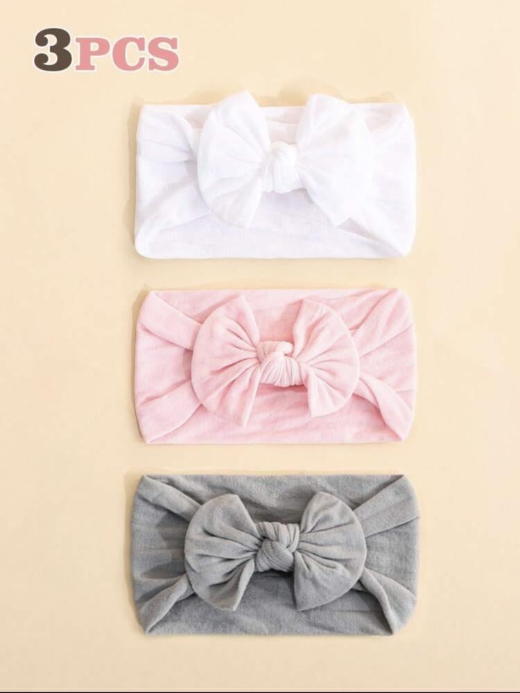 3 قطعة من قبعات الأطفال الرضع غير المتميزة، ناعمة وعصرية ومناسبة للاستخدام اليومي في الاستحمام واللعب، تتميز بشريط رأس القوس