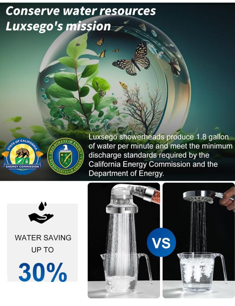 • منعم الماء يحمي أحبائك: رأس دش مفلتر مدمج بنوعين من الخرز المعدني الطبيعي النقي من لوكسيغو، والذي يزيل الكلور والفلورايد والمعادن الثقيلة والشوائب بشكل فعال، وينقي وينعم الماء العسر. يجعل بشرتك أكثر نعومة ويحافظ على توازن زيت الجسم. استمتع بأنظف تجربة استحمام مع عائلتك من رأس الدش من لوكسيغو الآن!