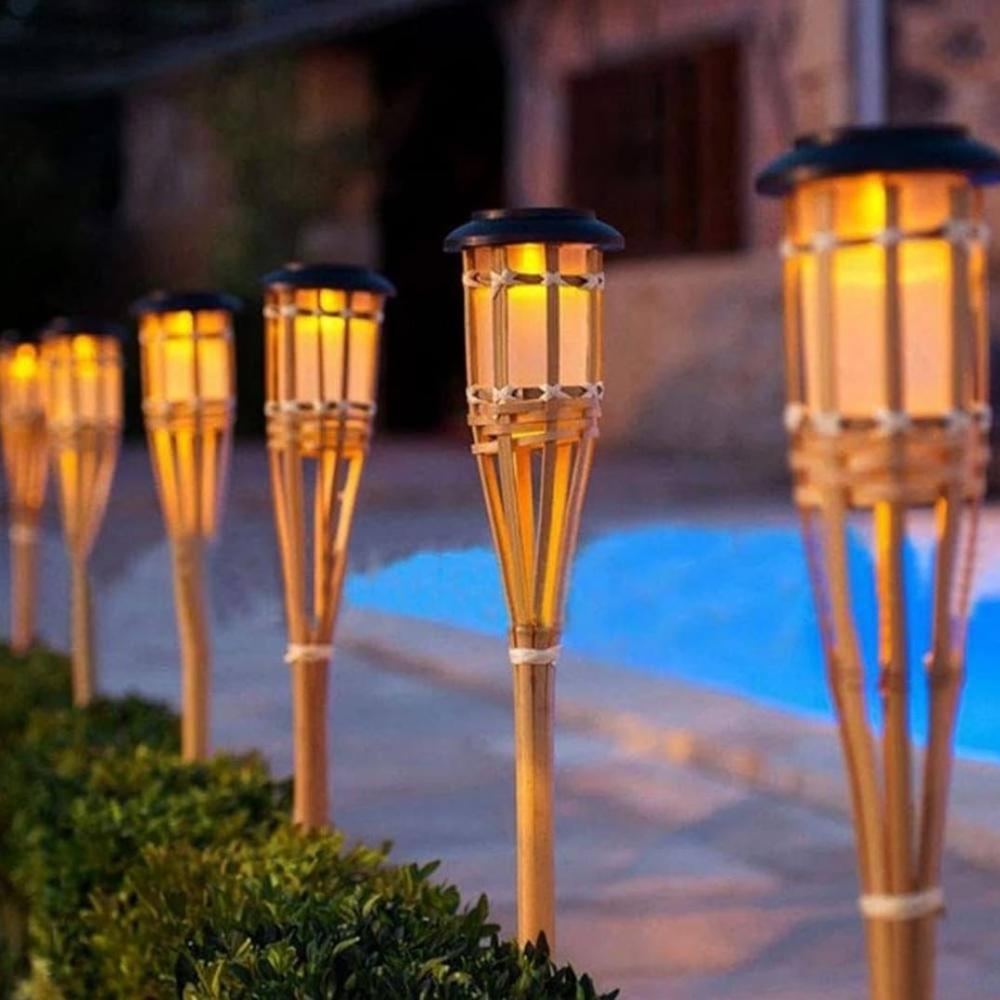 كشاف الخيزران الشمسية، مصباح عشبي شمسي لحديقة فناء الفناء (إضاءة دافئة، قطعة واحدة)
