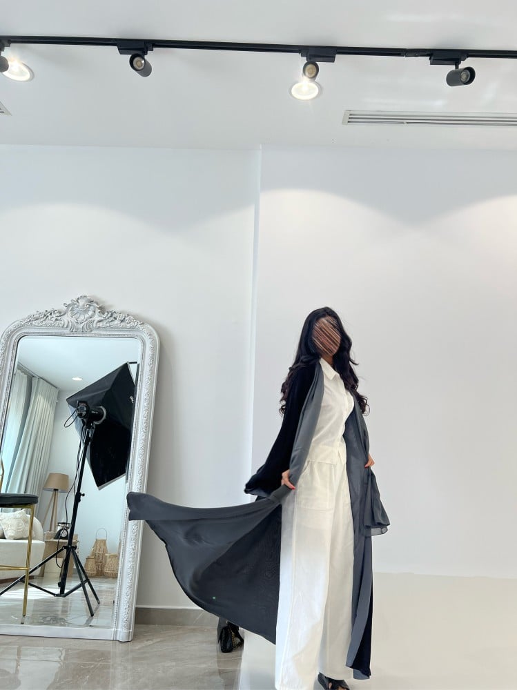 عباية تو فيس لون رمادي واسود
