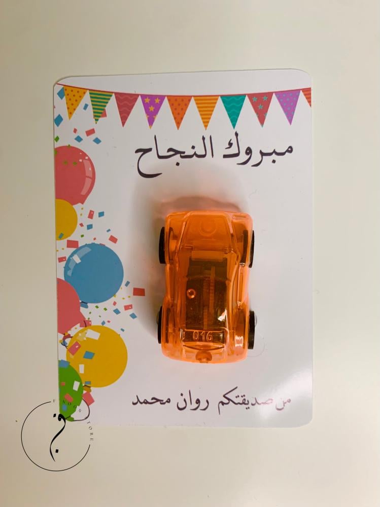 🚗 توزيعات النجاح – كرت تهنئة مع سيارة صغيرة (مع إمكانية تخصيص الاسم)