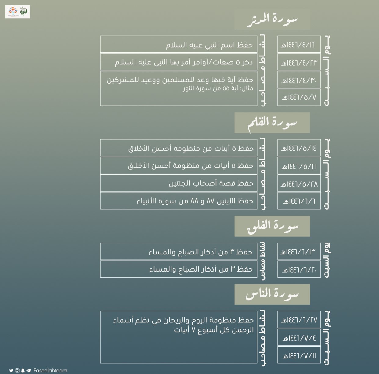 • مجالس أسبوعية، نتناول فيه آيات فنتلوها، ونتدارسها، ونربطها بواقعنا.
