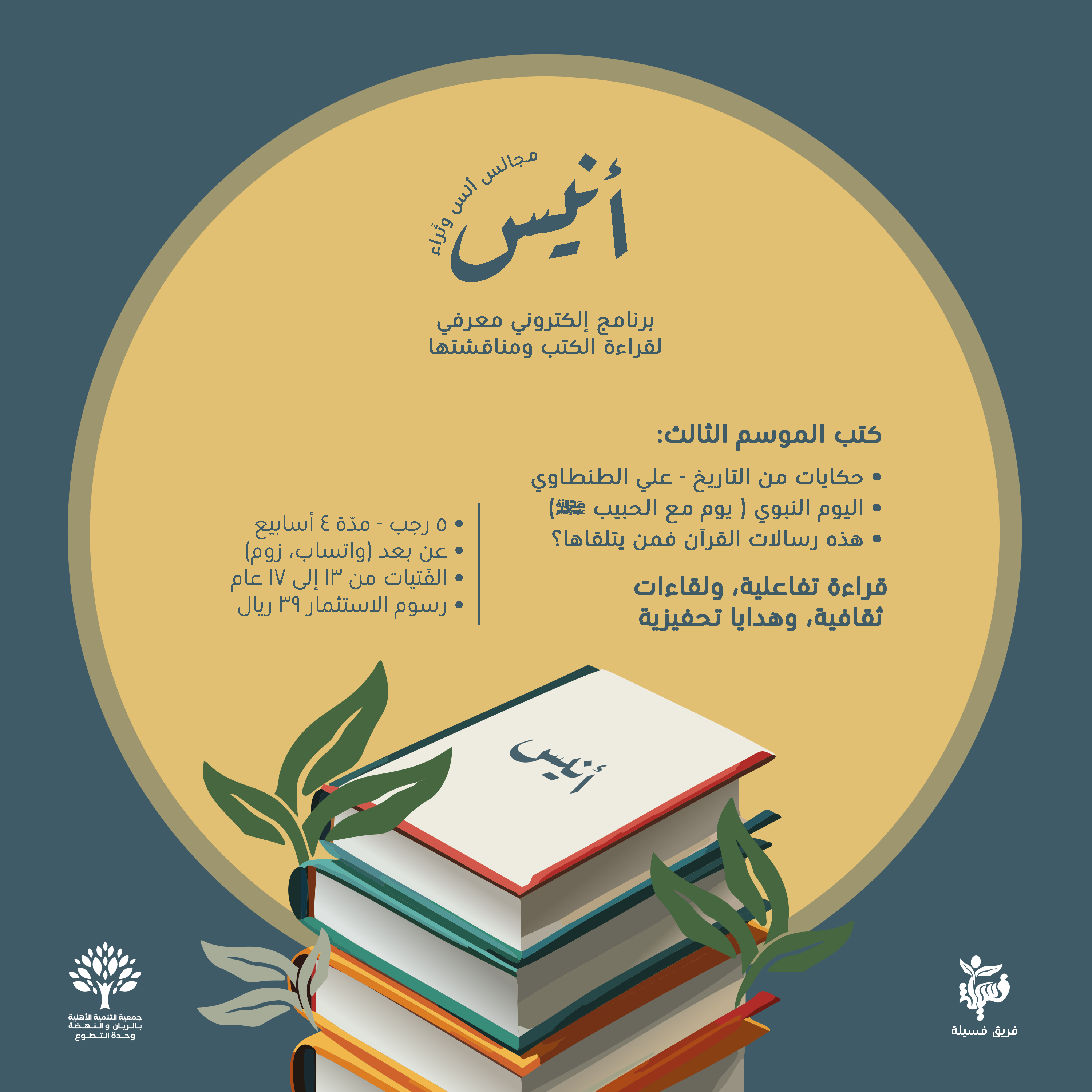 • نصاب يومي مقروء، لقاءات أسبوعية للنقاش، مسابقات وجوائز.