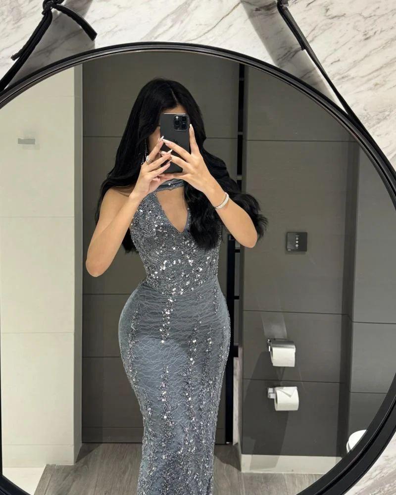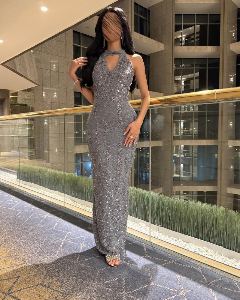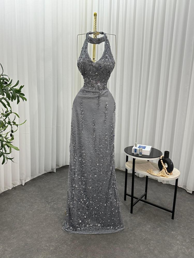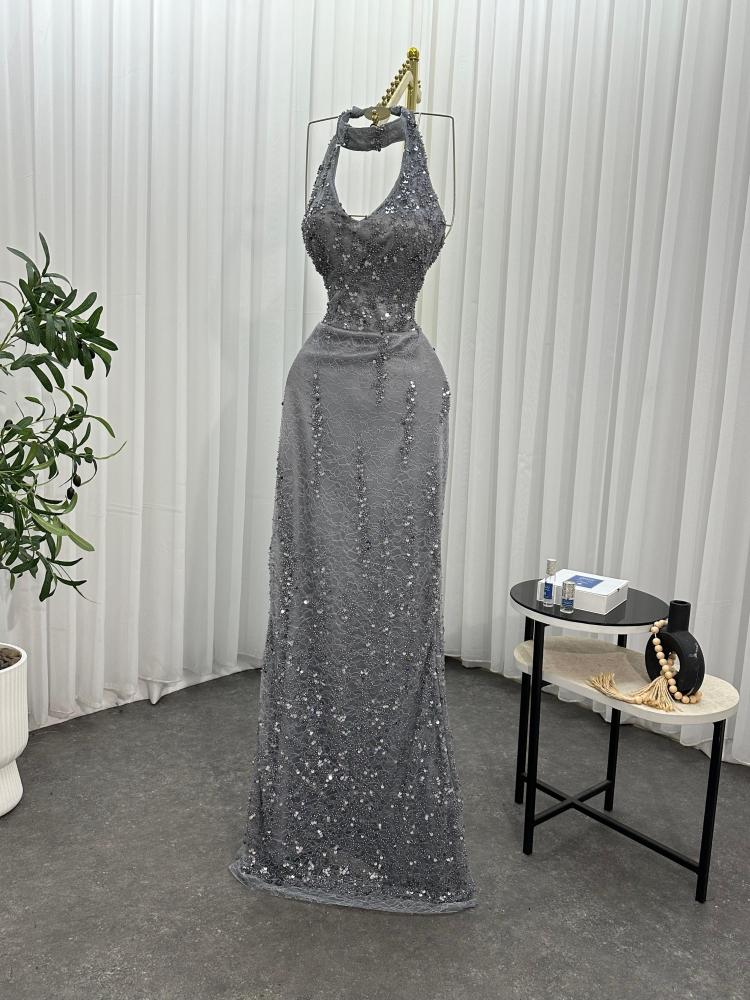 تألقي بإطلالة ساحرة لا مثيل لها مع فستان همس الليل الرمادي المصمم بأسلوب ملكي يبرز أنوثتك بفخامة. يتميز هذا الفستان بقصة ضيقة تلتف حول الجسم بنعومة وتُبرز جمال القوام، مع فتحة أمامية صغيرة عند الصدر تضفي لمسة جذابة راقية. القماش مُطرّز بالكامل بتطريزات براقة تلتقط الضوء بحركة ساحرة في كل خطوة، بينما يأتي بقصة طويلة تنسدل بأناقة حتى الأرض. القماش يحمل تصميمات تموجية ناعمة مع لمعة فريدة تجعل كل ظهور لكِ كالأميرات.