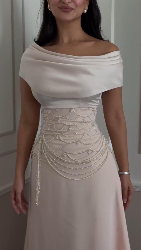 - التصميم: قصة أنثوية ناعمة بخامة فاخرة