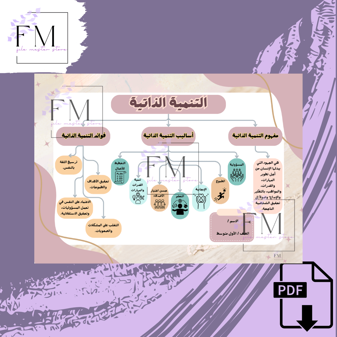 مطوية اجتماعيات أول متوسط الترم الثاني - خريطة مفاهيم للتنمية الذاتية