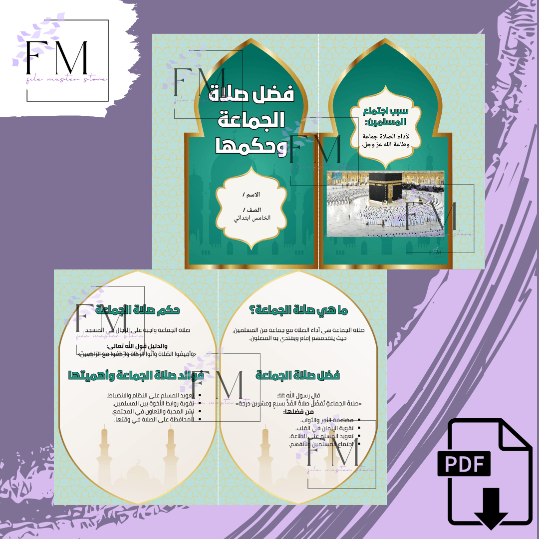 مطوية دراسات إسلامية خامس الترم الثاني - فقه ( فضل صلاة الجماعة وحكمها )