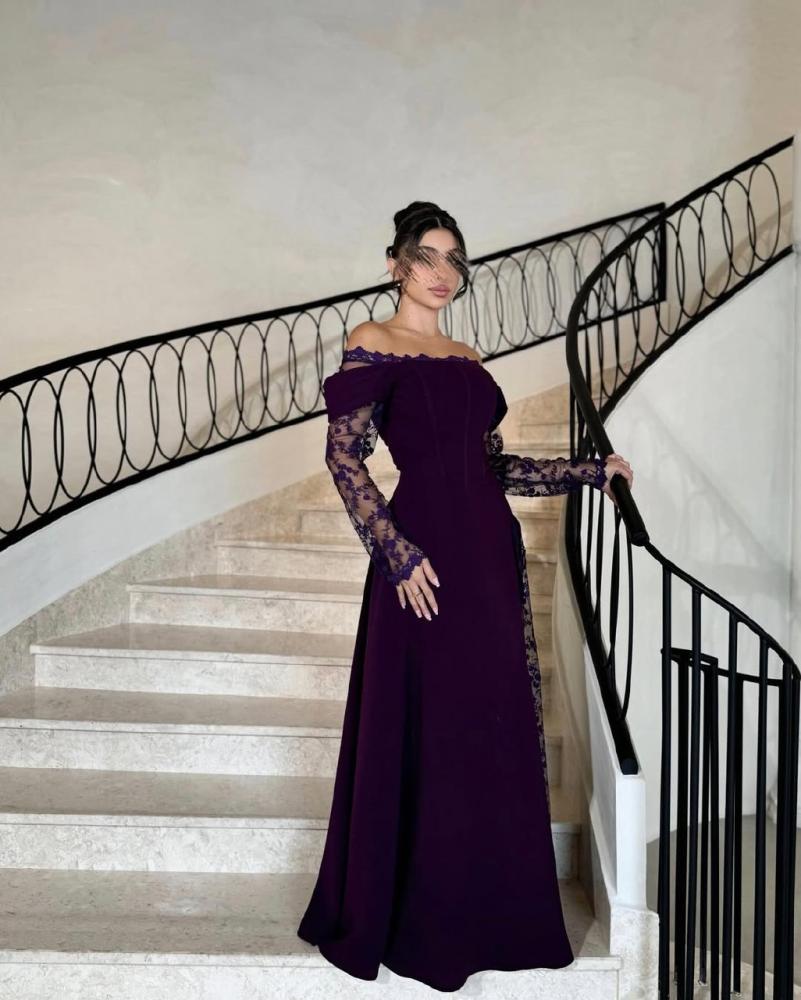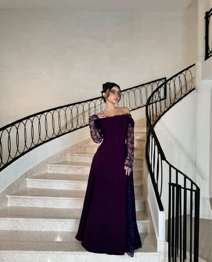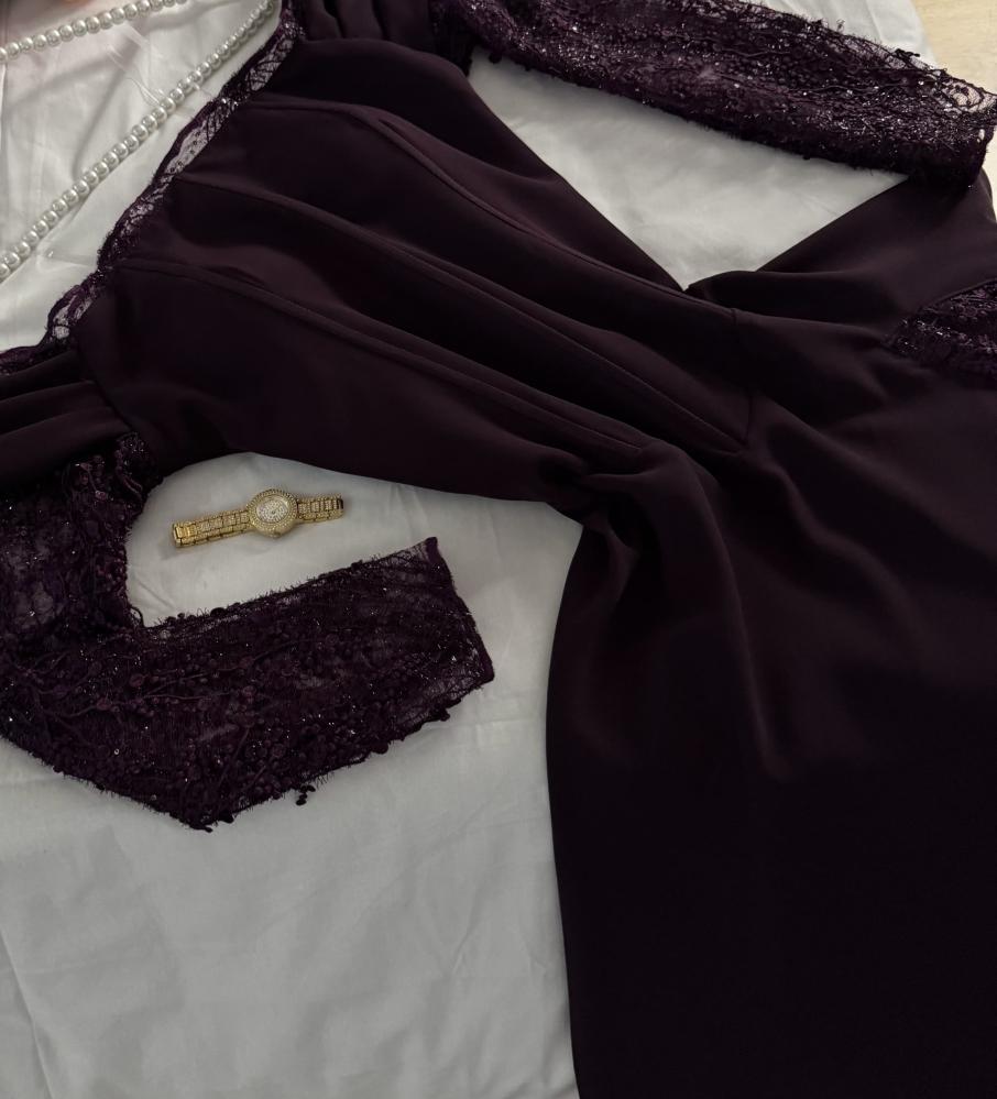 فستان ليلكي بأكمام دانتيل