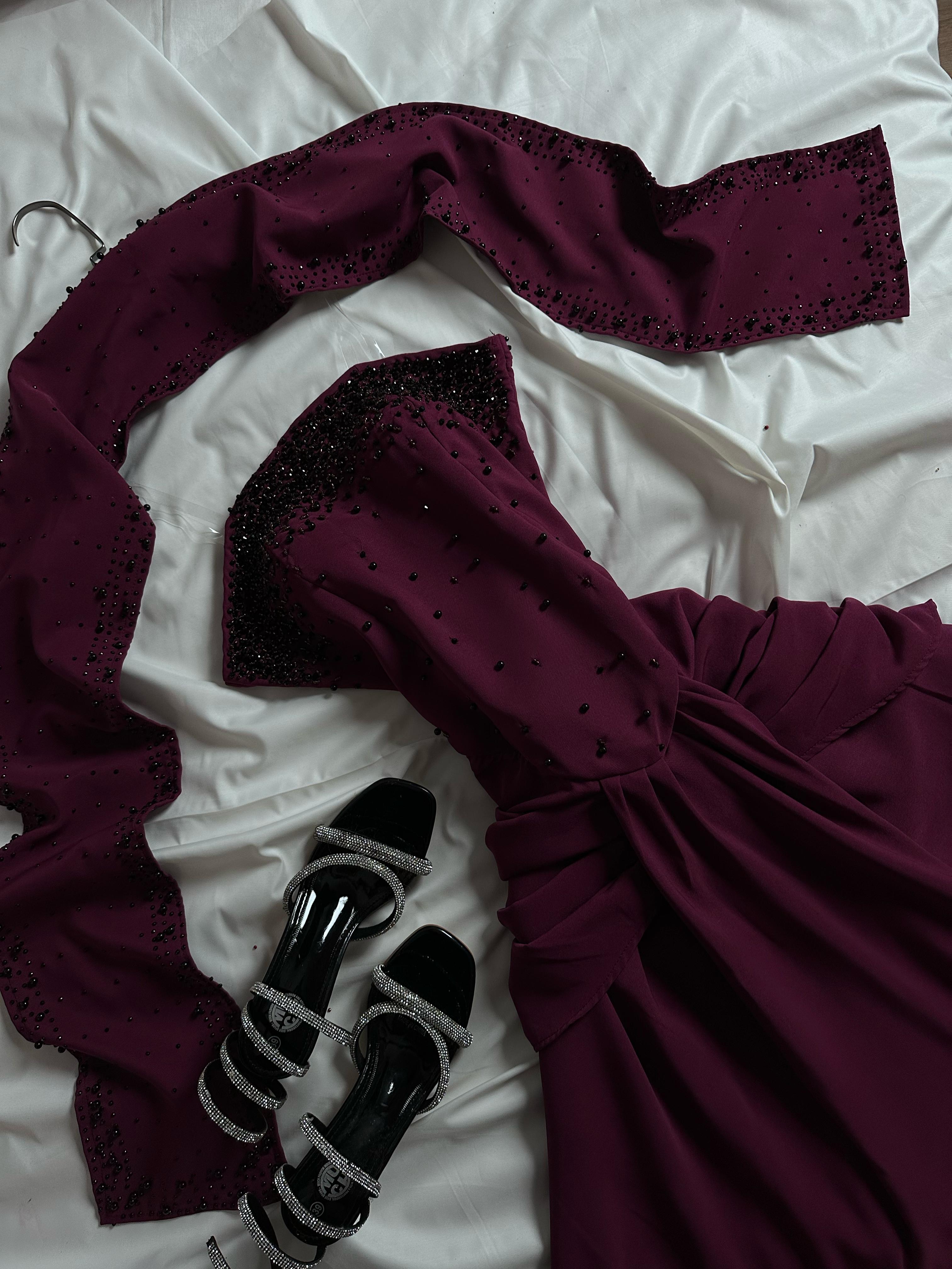 فستان تطريز ليلكي