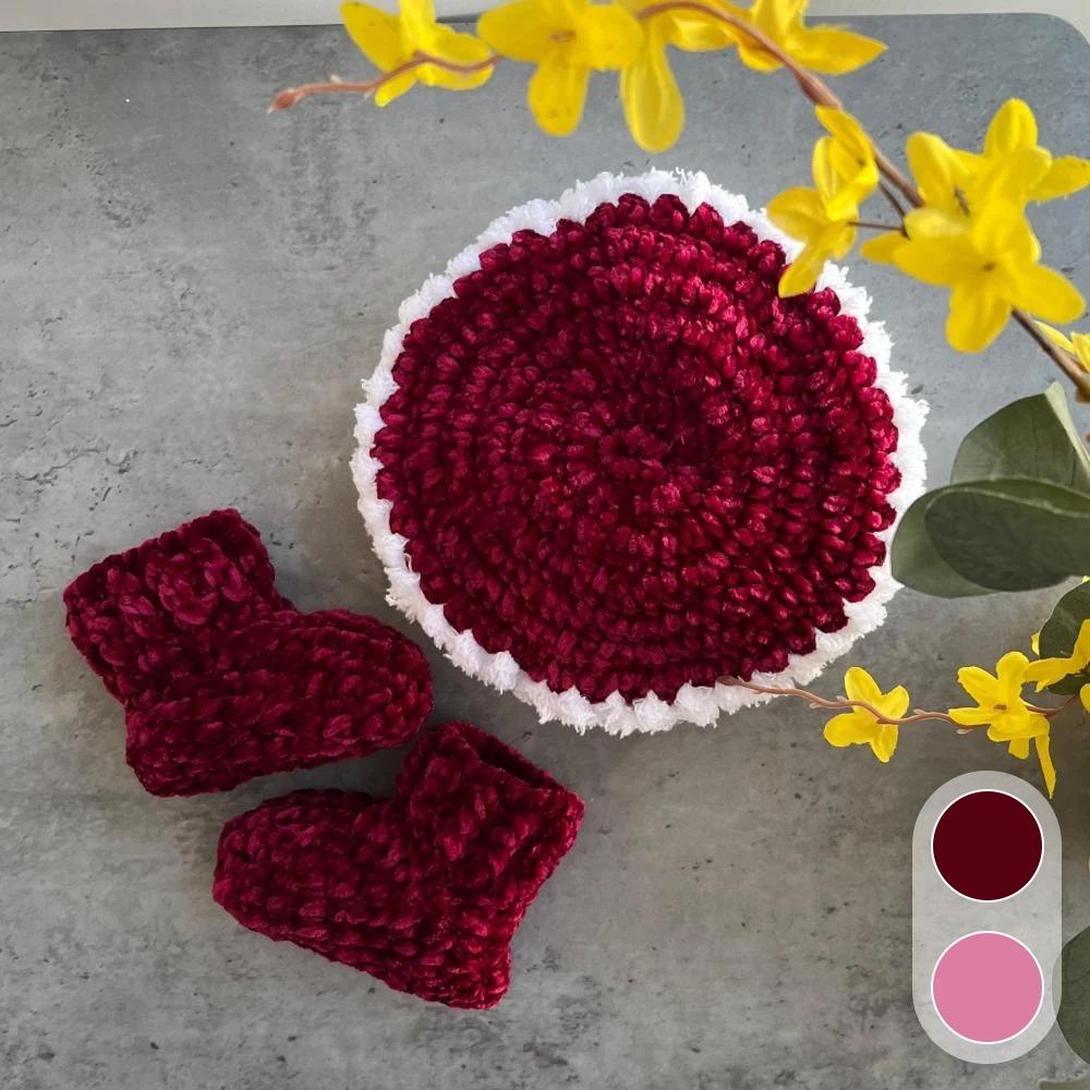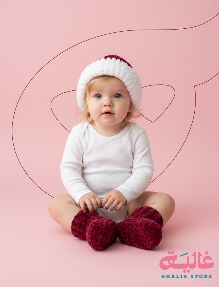 سالي - طقم مكون من (قبعة - جورب) محاكة يدوياُ بأجود أنواع الخيوط المخملية والفرو