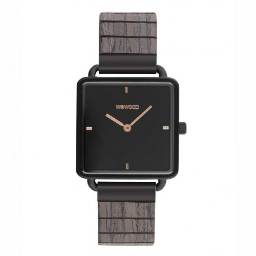 ستيل أسود مع مينا أسود وعقارب وعلامات بلون الروز قولد